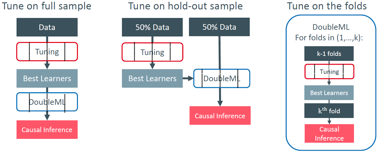 DML can be generalized to other causal models and settings (multiple treatments, heterogeneous treatment effects, \(\ldots\) )